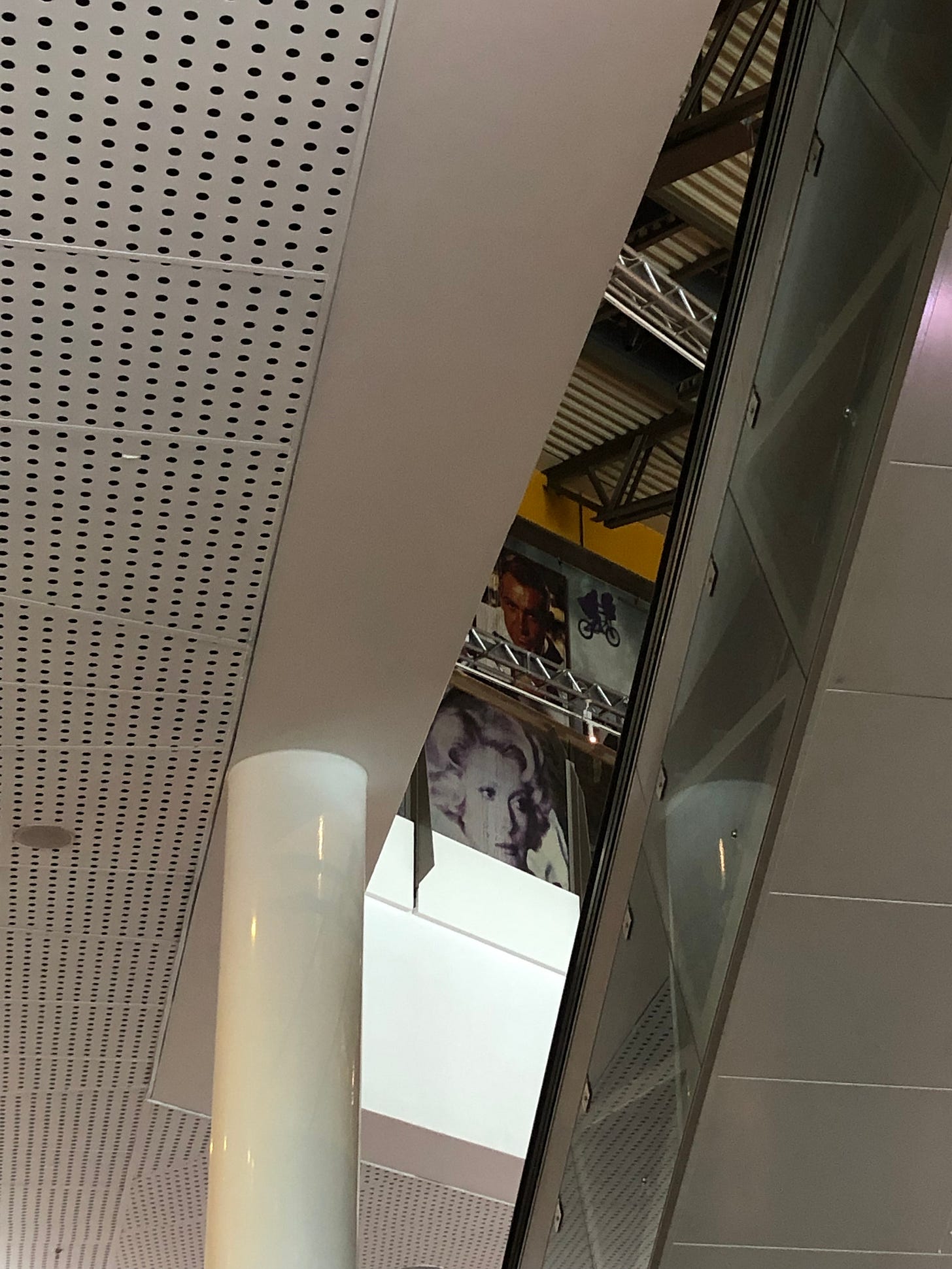 Back in the zone of shopping centres there is another trampoline-based birthday party happening, with screaming children leaving and entering the inner sanctums where special trampoline socks must be worn. From this vantage point only part of the multiplex cinema’s gigantic banner can be seen: the faces of Grace Kelly and Sean Connery, and the silhouetted BMX from E.T.: The Extraterrestrial.