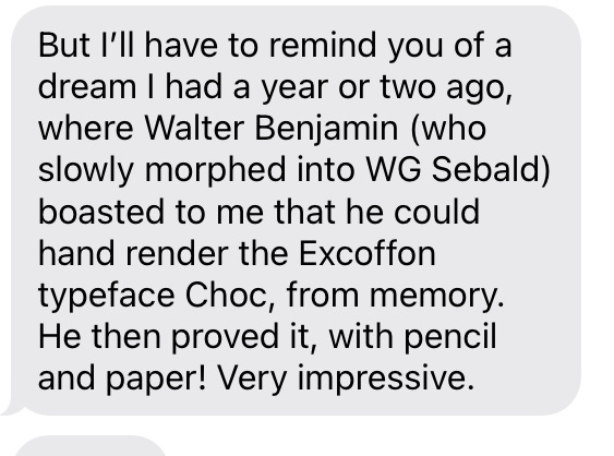 The Belgian writer is looking for references, either literary or philosophical, to the idea of shyness. He shyly asks for help, but it’s hard to think of any. The French writer, shyly, replies that he couldn’t think of any either. What is presumably required is that a mind like Blanchot’s or Nancy’s turns itself towards shyness as a state of being, as an essential human characteristic or as an effect of living amongst society’s horrific extroversions. But probably someone will publish a much-admired, but cheaply aphoristic, ‘theory’ book called On Shyness, perhaps a privately educated writer in their late 30s, neat side parting (male) or big fringe (female), striped t-shirts and tote bags at the Frankfurt book fair, panel discussions at the Tate, buying a house in south London, piano and floorboards, houseplants, so many plants, fresh herbs.