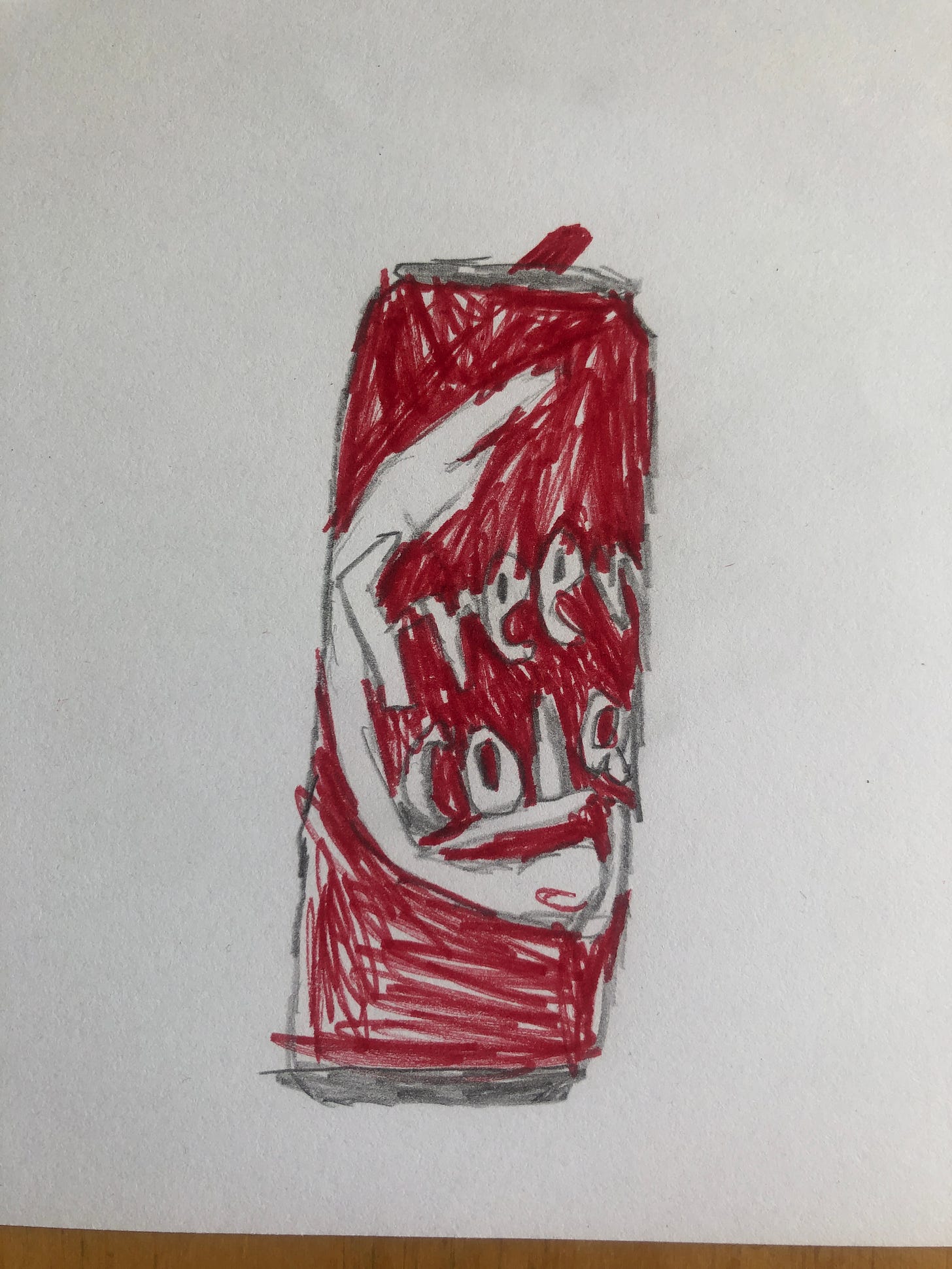 The older boy made a drawing of a can of ‘Freeway’, the proprietary cola of pan-European supermarket LIDL.