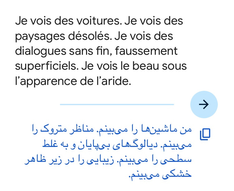 He sends a small description, which I put into Google Translate to create its Kiarostami-voiceover form.