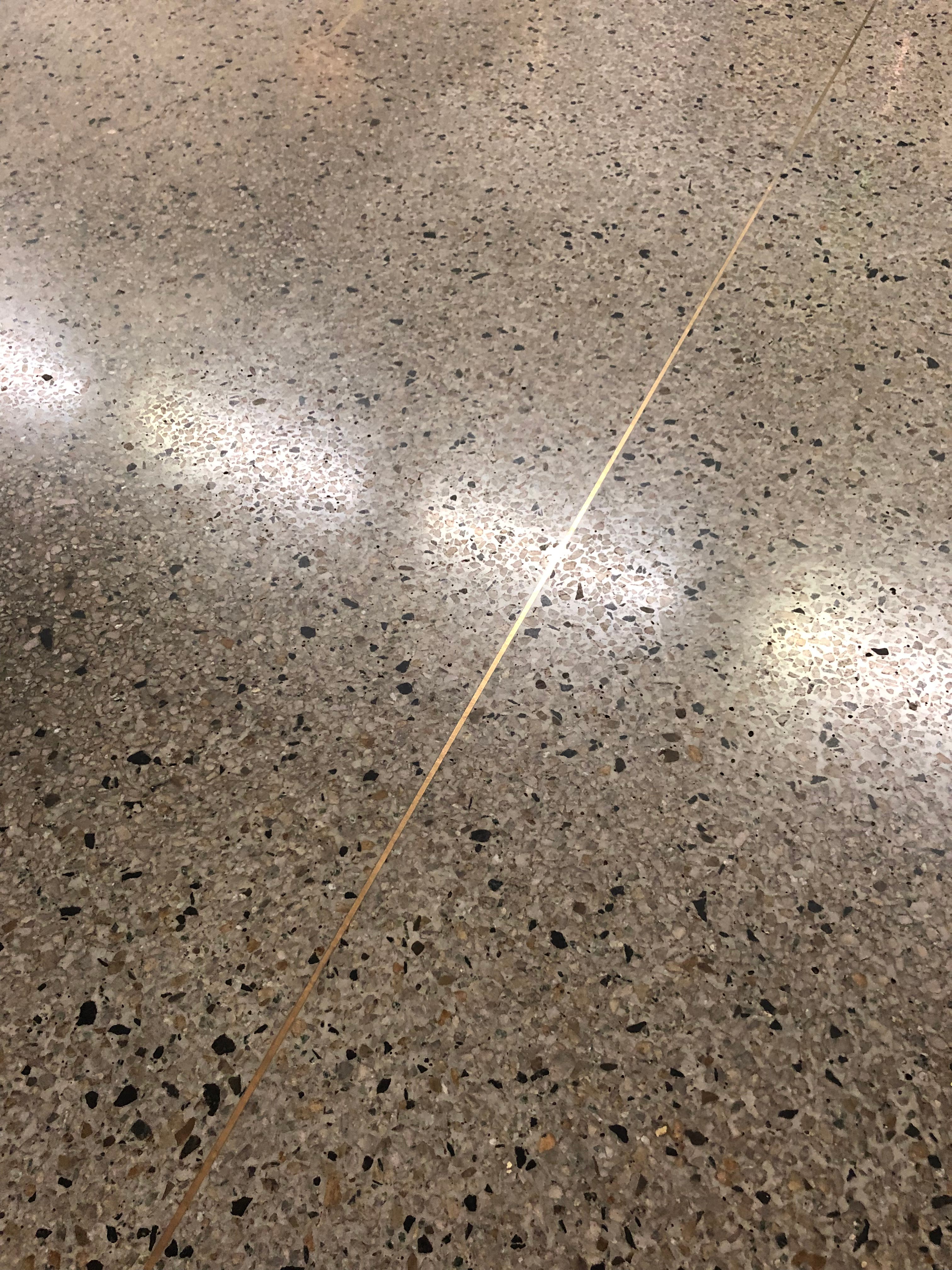 The platforms of this train station are composed of a beautifully speckled nougat-like ‘marble’, the panels of which are separated by narrow strips of brass.