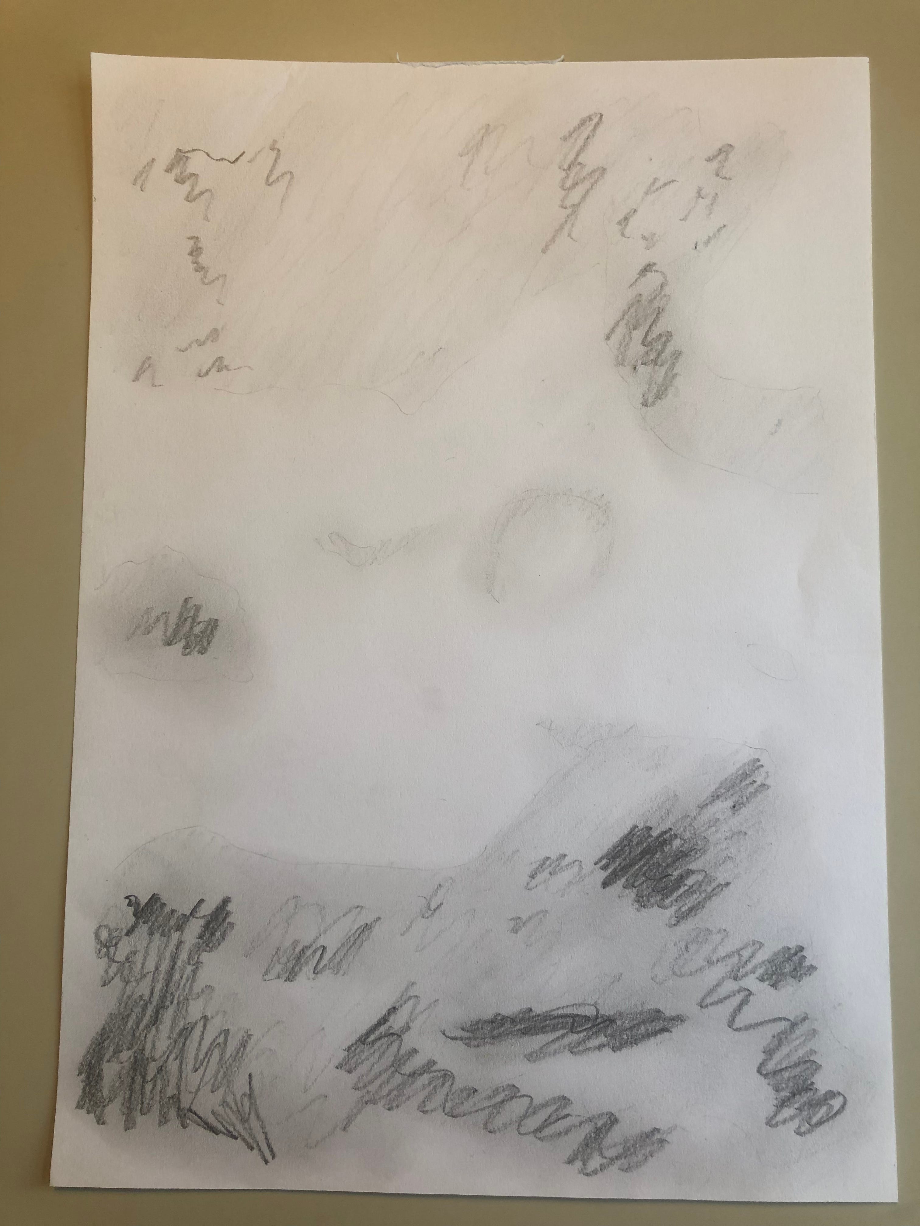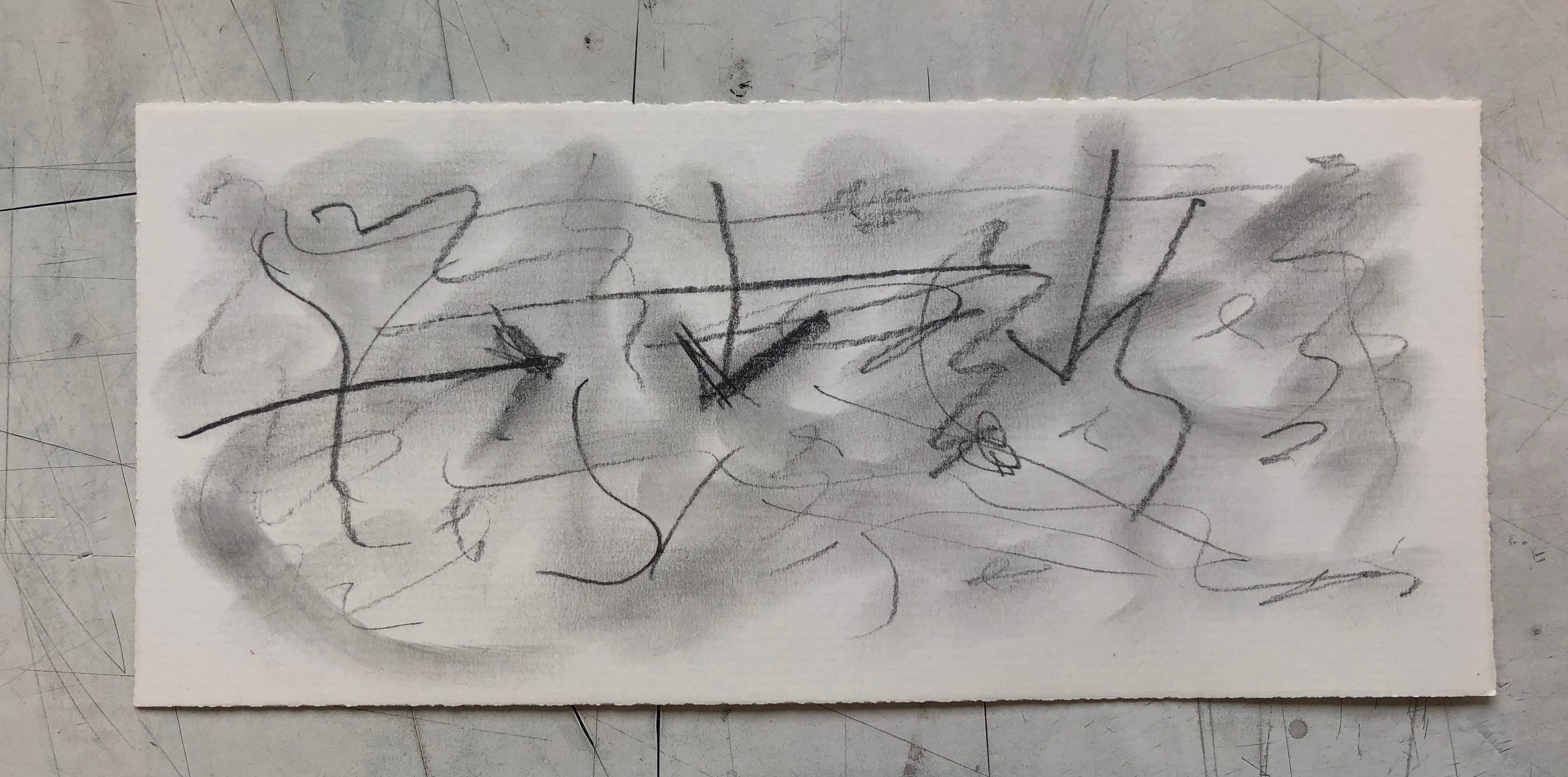 After a while, after making one of these pictures each day I go to the studio, of the sky outside visible from my table, I realised I could attempt to erase the pencil lines from them and leave only the white and grey patches of gouache.
