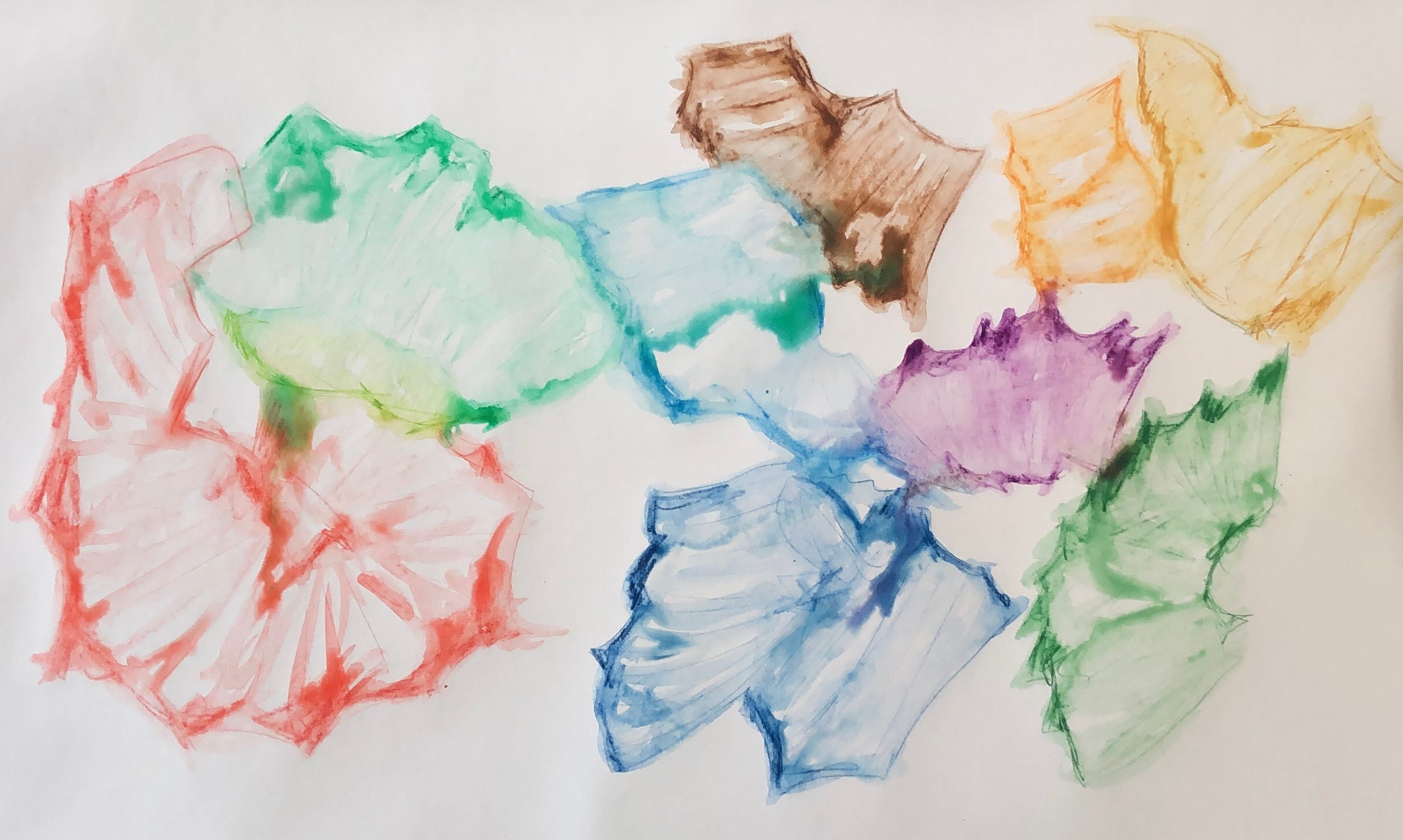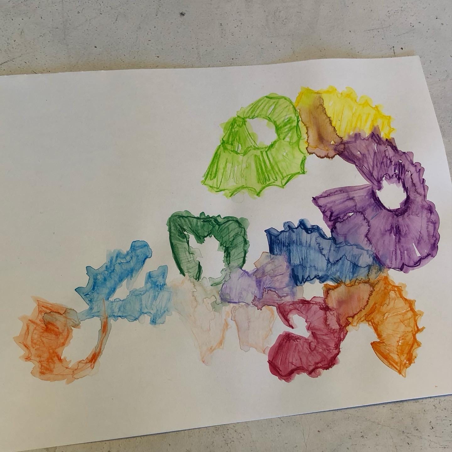 I have been sharpening my watercolour pencils, drawing the pencil shavings with their respective pencils, then roughly adding water with a too-large brush.